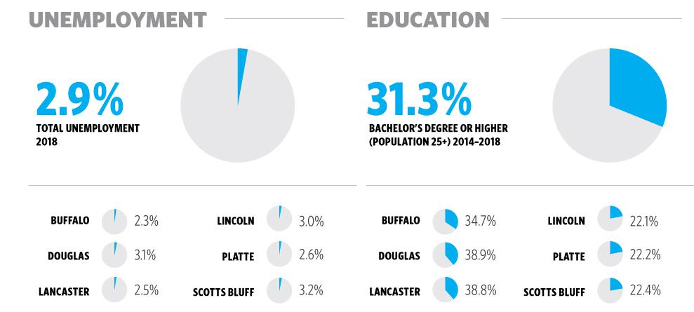 11 Nebraska Department of Economic Development and Nebraska Department of Agriculture, “Nebraska Exports,” using U.S. Census Bureau and U.S. Department of Agriculture’s Foreign Agricultural and Economic Research Services, updated October 10, 2019, https://opportunity.nebraska.gov/research/nebraska-exports/.